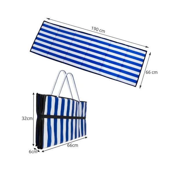 Összecsukható, vízhatlan, 1 cm vastag kavicsos strand matrac, 190×66 cm, csíkos