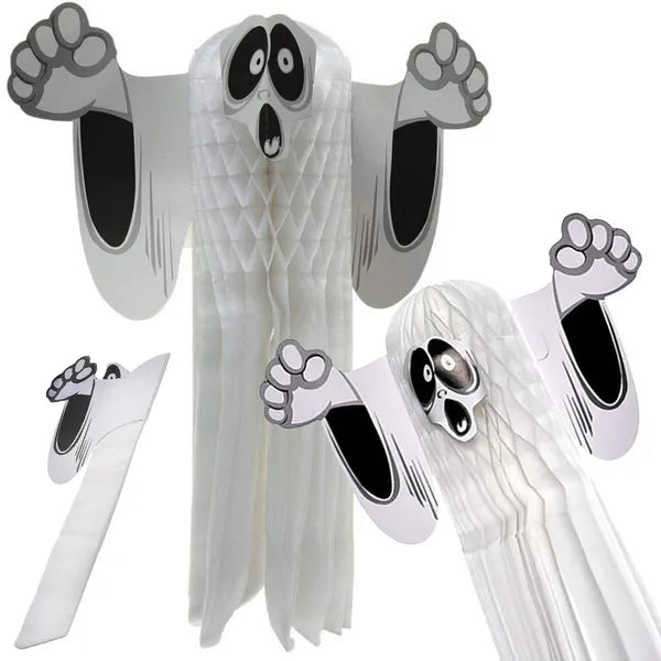 Összehajtható 3D papír szellem függődísz, 51 cm, fehér – Halloween dekór