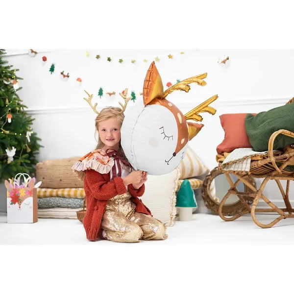 Lepd meg a gyerekeket vagy dekoráld stílusosan erdei témájú rendezvényedet ezzel a 73×64 cm-es, őzike fej alakú fólia lufival. A részletgazdag, színes grafika rögtön magára vonzza a tekinteteket, és örömteli hangulatot teremt születésnapon, babaköszöntőn vagy fotózáson.