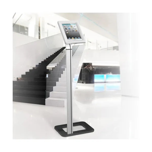 A látogatók figyelmének megragadása elengedhetetlen. Ez a padlón álló, zárható tablet állvány ideális megoldás, ha biztonságosan szeretnél interaktív tartalmat kínálni kiállításon, üzletben vagy a recepción.