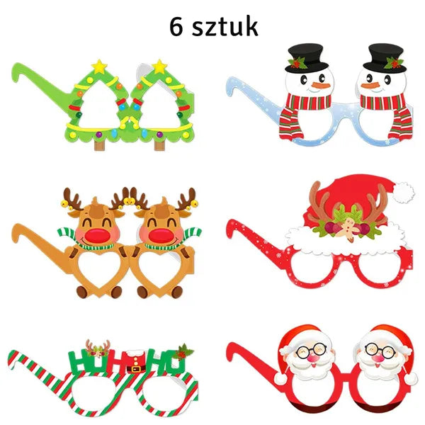 Papír karácsonyi dekor szemüveg készlet, 6 db vegyes minták