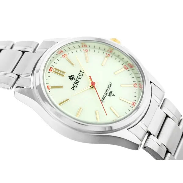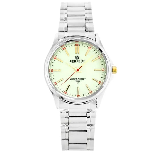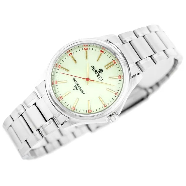 Perfect P424 férfi karóra, ezüst fém szíj, fluoreszkáló számlap, WR30