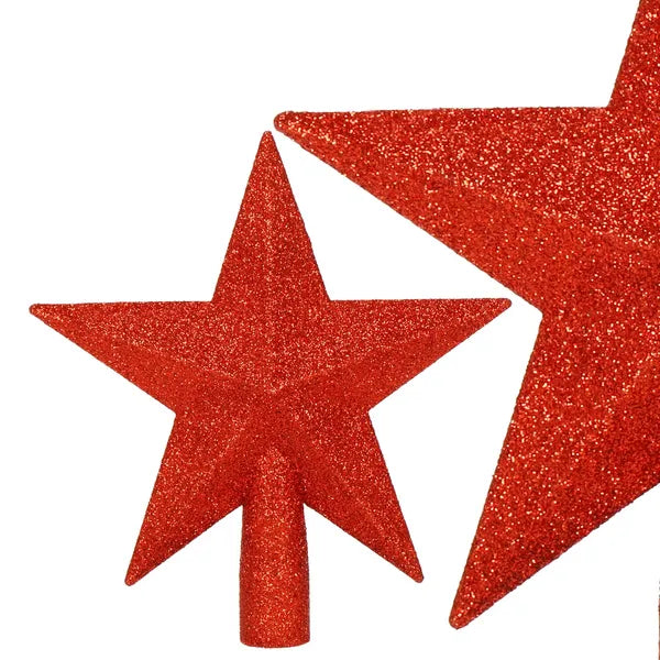 Dobd fel karácsonyfád megjelenését ezzel a ragyogó, piros csillag formájú csúcsdísszel! A csillámló felület ünnepi fényt kölcsönöz, míg a könnyű, tartós műanyag anyag biztonságos rögzítést tesz lehetővé.