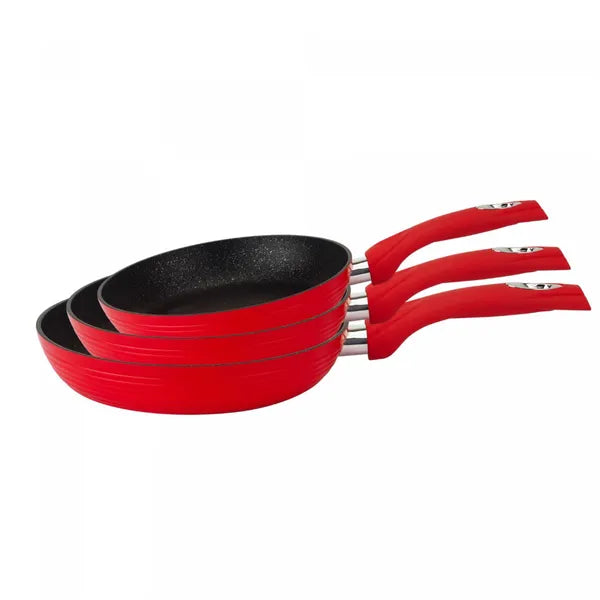 Piros, indukciós 3 részes márvány bevonatú kovácsolt alumínium serpenyő szett
