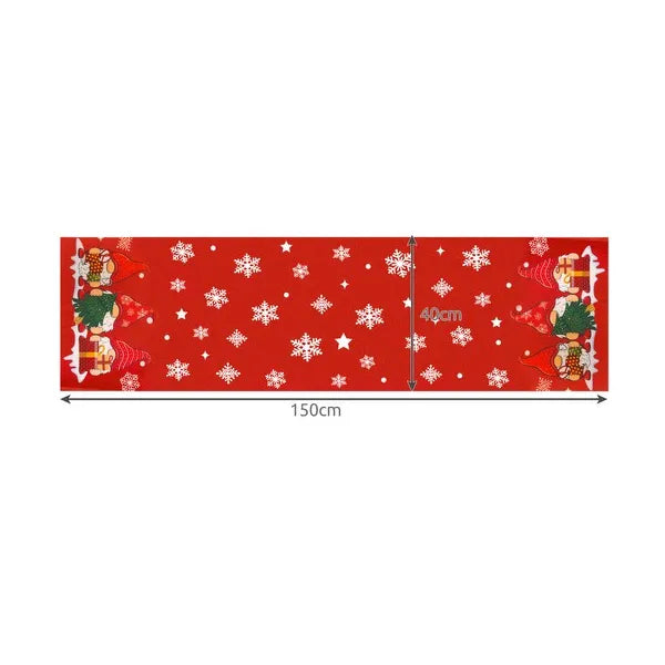 Az ünnepi készülődés egyik legfontosabb eleme a megterített asztal. A piros alapú, hópelyhekkel, csillagokkal és két vidám ajándékosztó manóval díszített futó azonnal meghitt, varázslatos hangulatot teremt, miközben megóvja bútorodat a foltoktól és karcolásoktól.
