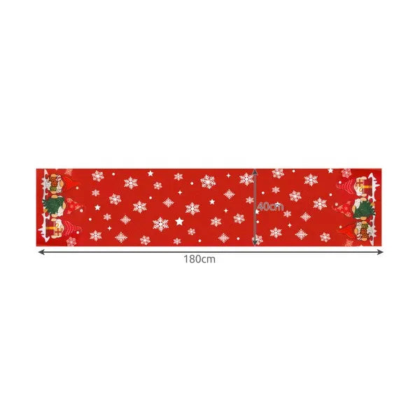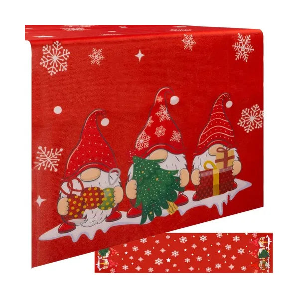 Varázsolj meghitt, ünnepi hangulatot az étkeződbe ezzel a piros, 180×40 cm-es karácsonyi asztali futóval, amelyet vidám manók, fehér hópelyhek és csillagok díszítenek. A kiváló minőségű poliészter anyag és a lézerrel vágott szegély hosszú élettartamot, foszlásmentes széleket biztosít.