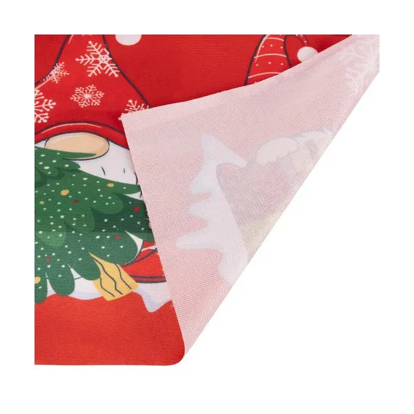 Piros karácsonyi asztali futó, manós mintával, 180×40 cm, poliészter