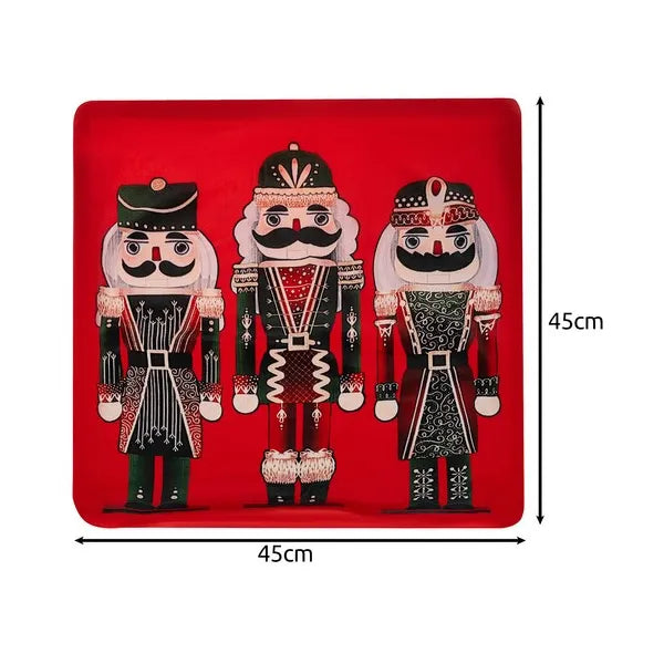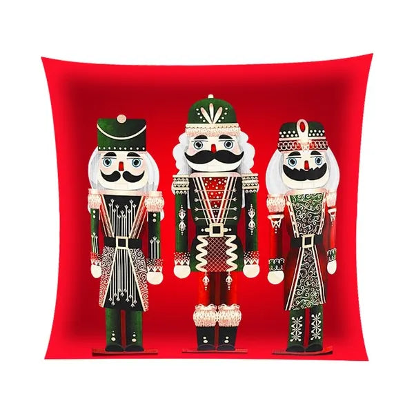 Plüss karácsonyi díszpárnahuzat Diótörő mintával, 45×45 cm