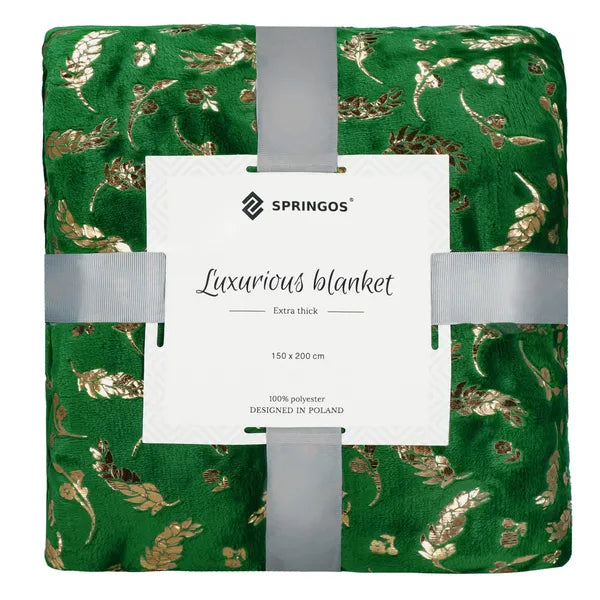 Plüss takaró 150×200 cm, üvegzöld-arany, 100% poliészter