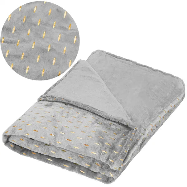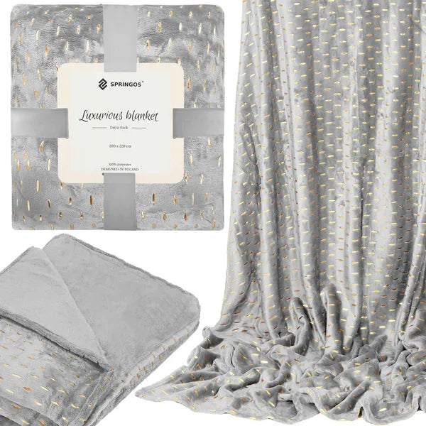 Puha pléd 200×220 cm, szürke-arany, 100% poliészter