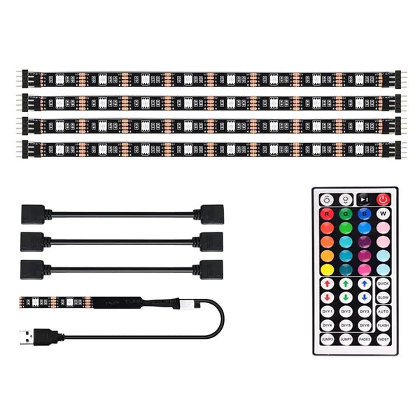 - Komplett készlet: 4 db, egyenként 50 cm hosszú RGB LED szalag toldókkal.