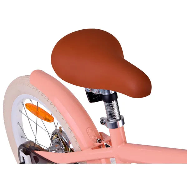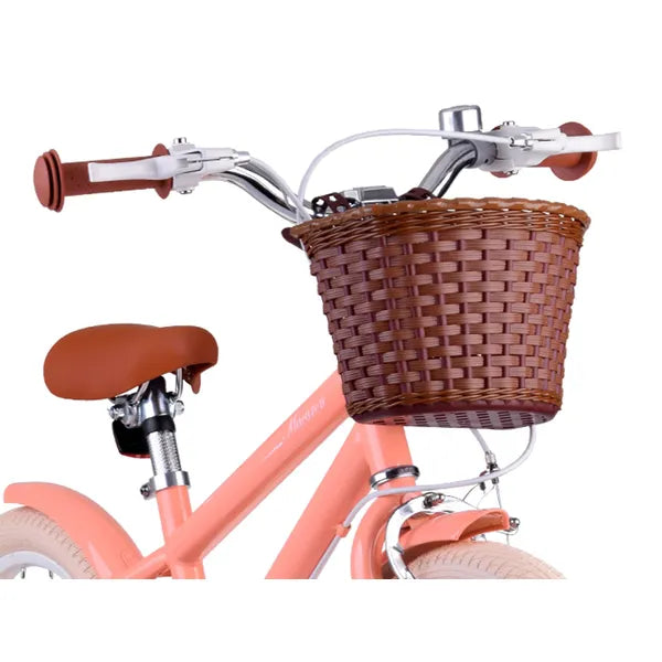 A RoyalBaby Macaron 16'' vintage gyermekkerékpár a klasszikus, bézs színű megjelenést modern biztonsági megoldásokkal ötvözi. Könnyű acél váza miatt a kis bringás gyorsan fel- és leszállhat, a fonott kormánykosár pedig kedvenc játékainak is helyet ad.