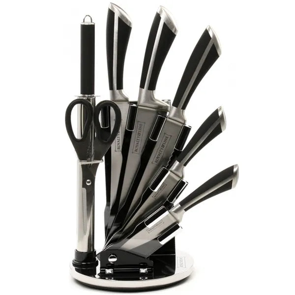 Royalty Line 8 részes rozsdamentes acél késkészlet forgó állvánnyal