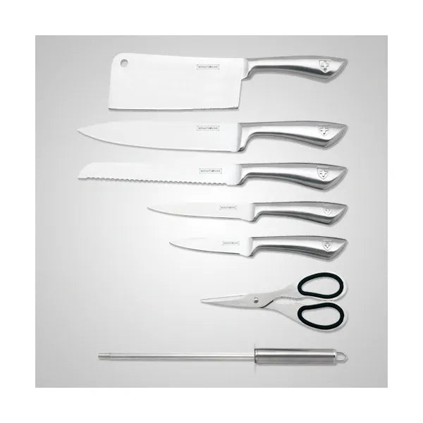 Ha profi szintű, mégis otthoni használatra tervezett késeket keresel, a Royalty Line RL-KSS600 8 darabos késkészlet a tökéletes választás, amely stílust, pontosságot és tartósságot visz a konyhádba.