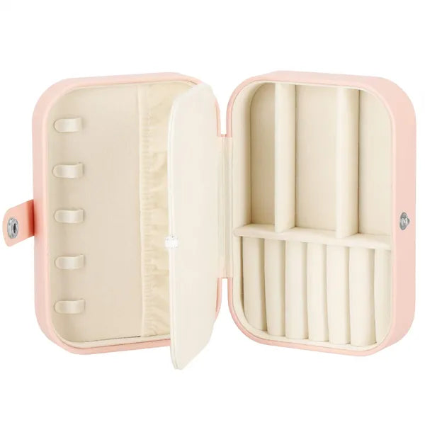 Az elegáns rózsaszín ékszerdoboz eco bőr borítással és puha krémszínű velúr belsővel gondoskodik arról, hogy kedvenc ékszereid mindig rendezetten és biztonságban várjanak rád – akár otthon, akár utazás közben.