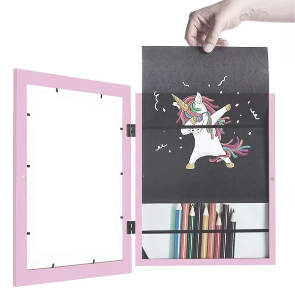 Álmodott már olyan képkeretről, amely nemcsak kiemeli kedvenc A4-es fotóit vagy grafikáit, hanem a még nem használt lapokat is rendszerezve tárolja? Ez a rózsaszín, fából készült képkeret beépített rekesszel és praktikus mágneszárral pontosan ezt nyújtja.