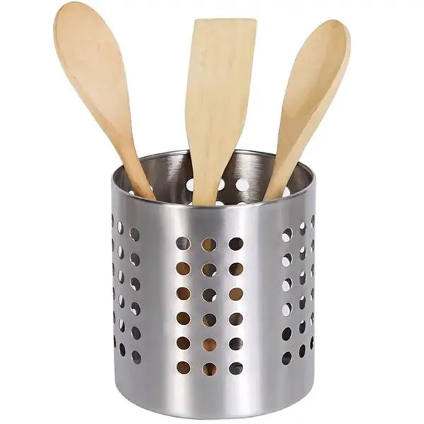 Helyezze el evőeszközeit higiénikusan és stílusosan ezzel az ezüst színű, rozsdamentes acél csepegtetővel. A sűrű perforáció nemcsak az edény falán, hanem az alján is megtalálható, így a víz gyorsan távozik, az eszközök pedig hamarabb száradnak és nem dohosodnak.