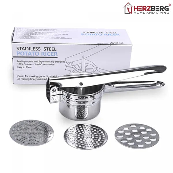 Rozsdamentes acél krumplinyomó 3 cserélhető tárcsával, csúszásgátló fogantyú