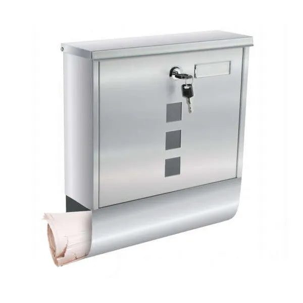 Rozsdamentes acél postaláda újságtartóval, szürke A4-es, ezüst 30,7×34 cm