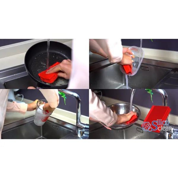 A SilicoClean piros szilikon tisztítószivacs a konyha és a háztartás nélkülözhetetlen innovációja. Két különböző felülete hatékonyan távolítja el a makacs szennyeződéseket, miközben kíméletes a kényes bevonatokkal szemben, legyen szó üvegről, kerámiáról vagy tapadásmentes edényekről.