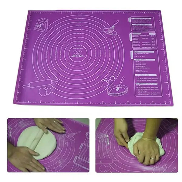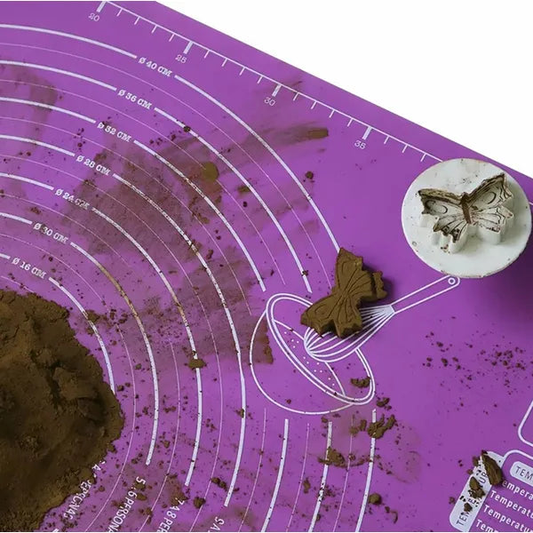 Az 60×45 cm-es, lila színű szilikon nyújtólap nélkülözhetetlen a sütés szerelmeseinek: tapadásmentes felülete megkönnyíti a tészta nyújtását, a kétoldali centiméteres beosztások és a középső körskálák pedig pontos méretezést tesznek lehetővé.