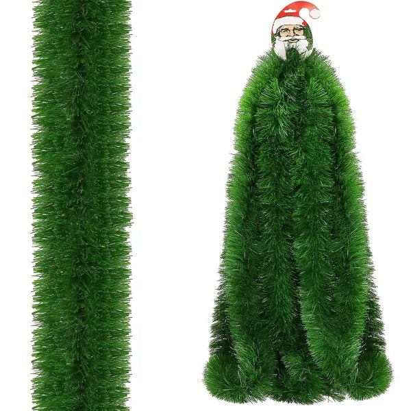 Sötétzöld karácsonyi füzér, 6 m x 10 cm, műanyag, modern design