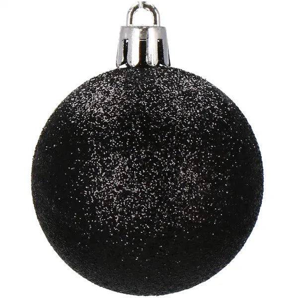 Hangulatos, egységes fekete karácsonyfadísz szett, mellyel elegáns és modern stílust adhat fájának. A 77 darabos, műanyag gömbökből álló válogatás 21 különböző mintát tartalmaz, így a változatosság és az egység egyszerre érvényesül. A törhetetlen kialakításnak köszönhetően ideális kisgyermekes vagy háziállatot tartó családoknak is.