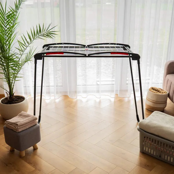 Springos fekete, összehajtható ruhaszárító állvány, 16 m, 15 kg