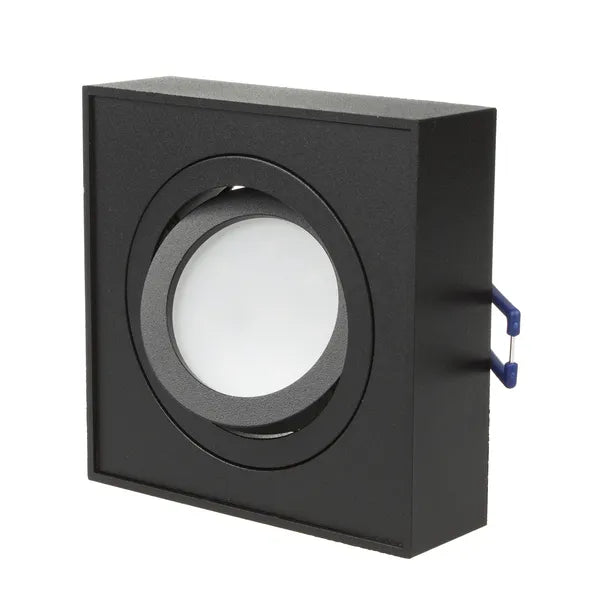 A Maclean MCE464 B süllyesztett spotlámpa keret elegáns, modern megoldás belső terek megvilágításához. Masszív, eloxált alumíniumból készült, így hosszú élettartamot és kifogástalan megjelenést kínál konyhában, előszobában vagy nappaliban egyaránt. A fekete, négyzetes keret 94×94×32 mm méretével diszkréten illeszkedik a gipszkarton mennyezetbe, a ±15°-os dönthetőség pedig célzott fényirányítást tesz lehetővé.