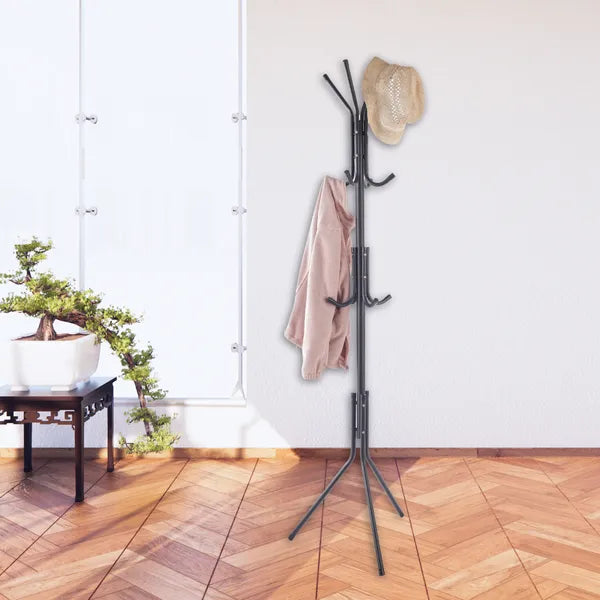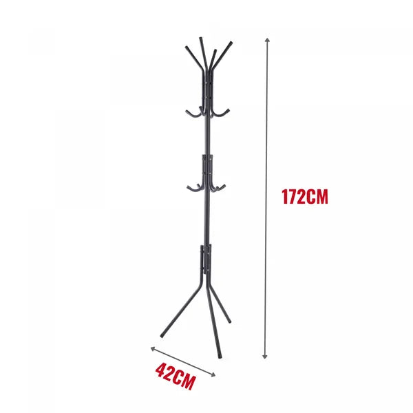 Háromszintes kialakítása gondoskodik róla, hogy minden ruhadarabnak, kalapnak vagy esernyőnek meglegyen a maga helye. A felső szinten hosszú kabátokat akaszthatsz, a középső szintre táskák és sapkák kerülhetnek, az alsó szint pedig az esernyők vagy sálak otthona. A 172×42 cm-es méretnek köszönhetően a legtöbb előszobába, kollégiumi szobába vagy iroda sarokba is beilleszthető.