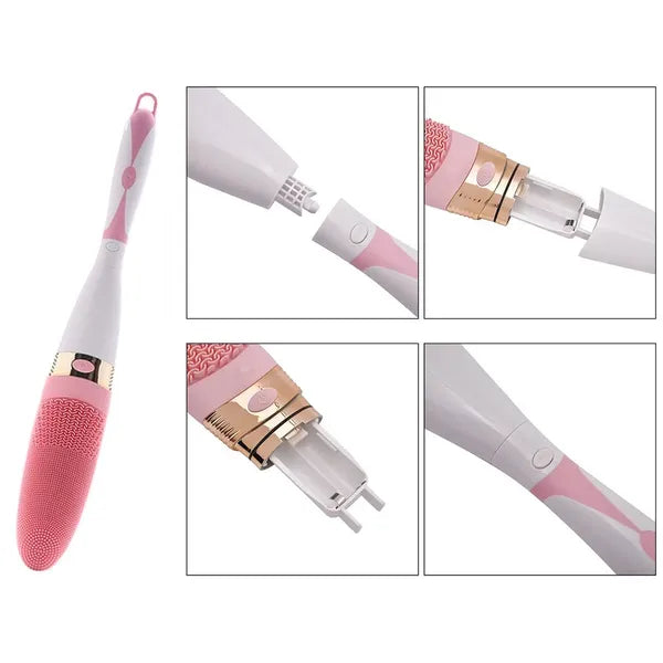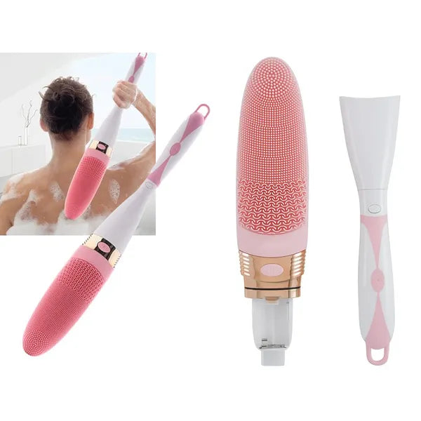 Szilikon hátmasszírozó fürdőkefe 2 sebességgel, hosszú nyél, vízálló