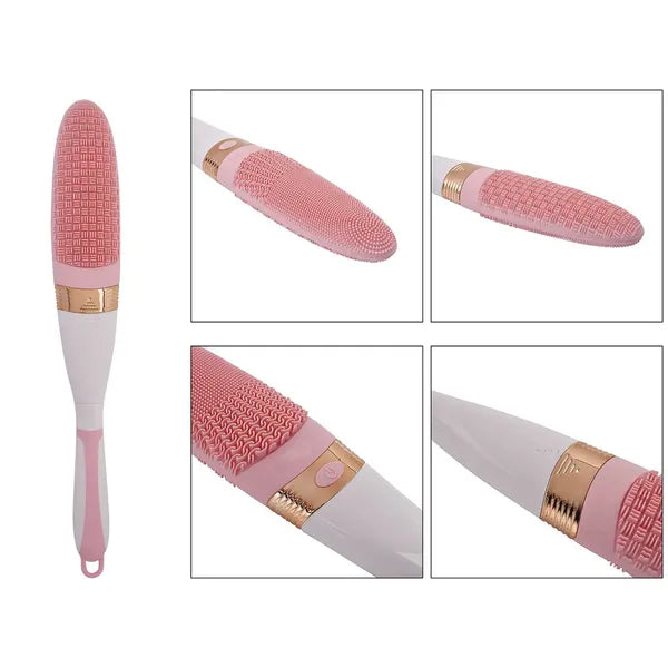 A puha, bőrbarát szilikon sörték gyengéden távolítják el az elhalt hámsejteket, míg a kefe hátoldalán lévő érdesebb felület alaposabb radírozást kínál.