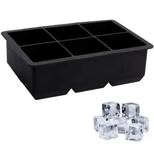 Szilikon jégkocka forma, 6 nagy 5×5 cm kockához, fekete