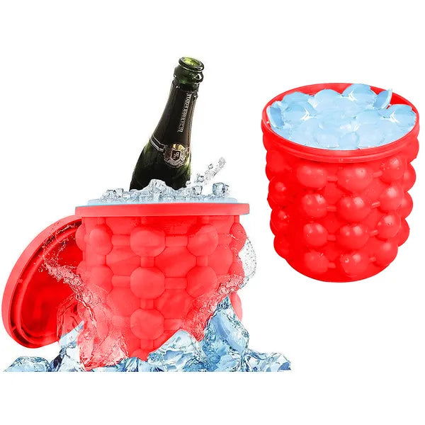 Egy forró nyári délutánon vagy baráti grillpartin sem kell lemondanod a jéghideg italokról: a praktikus, piros szilikon jégkocka vödör egyszerre 32 apró (≈2 cm) kockát fagyaszt, majd palackhűtőként is használható.