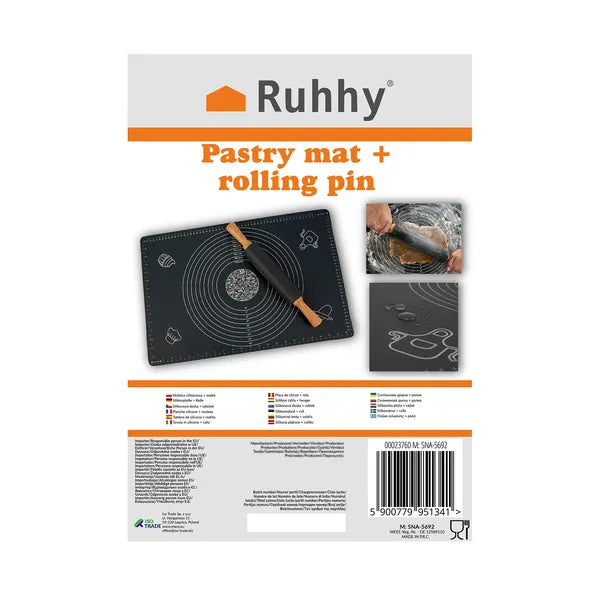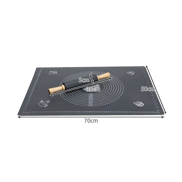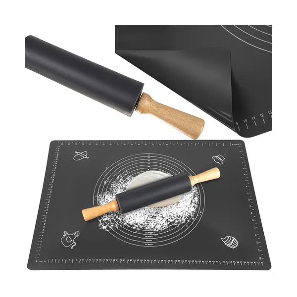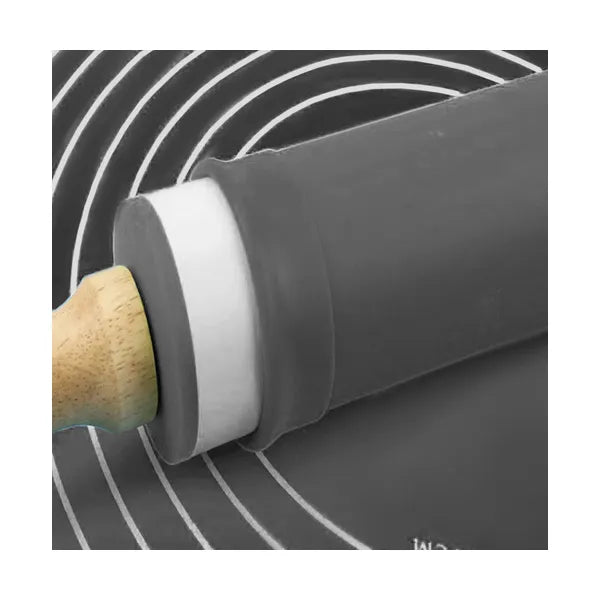 Az XXL méretű (70×50 cm) szilikon tésztanyújtó lap és a 38 cm-es, szilikon bevonatú nyújtófa minden házi pék kedvenc párosa. A tapadásmentes felületnek köszönhetően nem kell lisztezni, a tészta könnyedén leválik, a munkapult pedig tiszta marad.