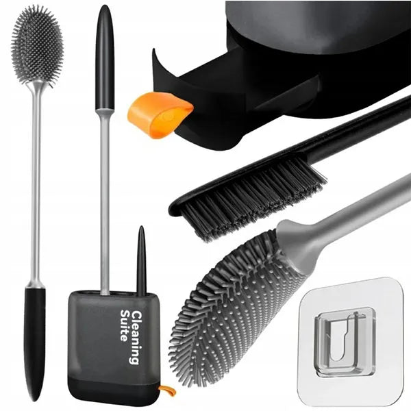 Szilikon WC kefe szett 2 darabos, fali tartóval, fekete