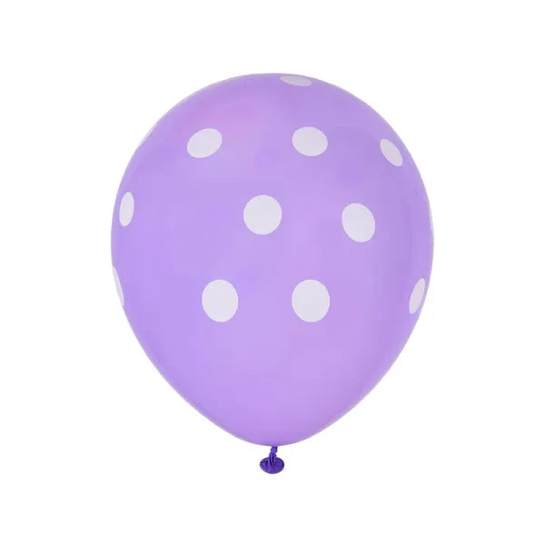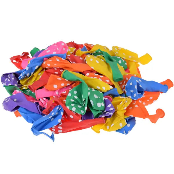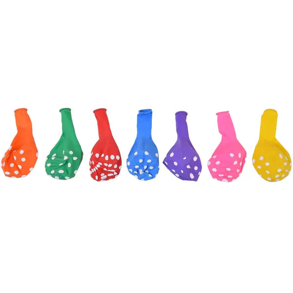 - Mennyiség: 100 db vegyes színű lufi fehér pötty mintával