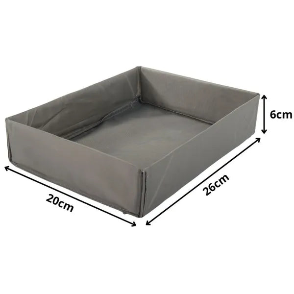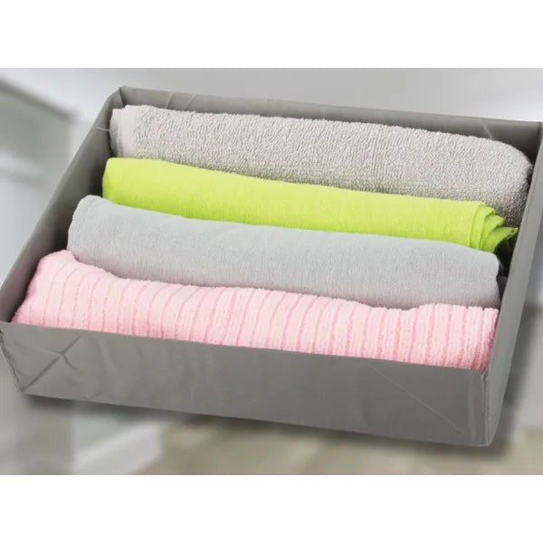 A 26×20×6 cm-es, szürke poliészter fiókrendezővel másodpercek alatt átláthatóvá válik a gardróbod. A merevített kartonoldalak stabil formát biztosítanak, nyitott kialakítása pedig gyors hozzáférést tesz lehetővé a fehérneműhöz, zoknihoz, kiegészítőkhöz vagy kozmetikumokhoz.