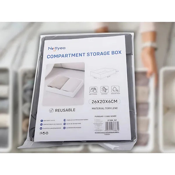 Szürke fehérnemű- és fiókrendező, 26×20×6 cm, poliészter