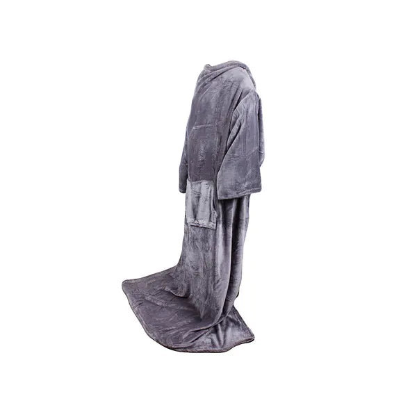 Anyag: 100 % poliészter polár. Csomag tartalma: 1 db szürke ujjas takaró eredeti csomagolásban.