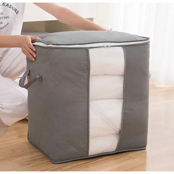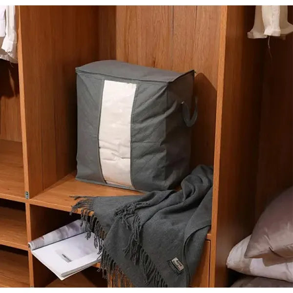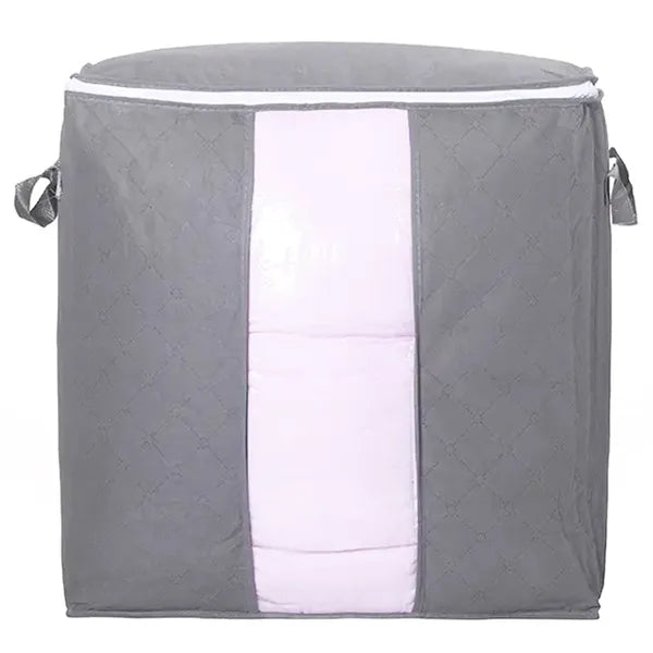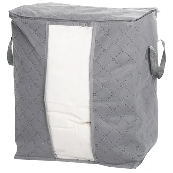Olyan praktikus tárolóra vágyik, amely védi az ágyneműt és a szezonális ruhákat a portól, miközben helyet is spórol? A szürke textil tároló táska levegőáteresztő poliészterből készült, cipzárral zárható, fogantyúval könnyen mozgatható, átlátszó ablaka pedig egy pillantással megmutatja a tartalmát.