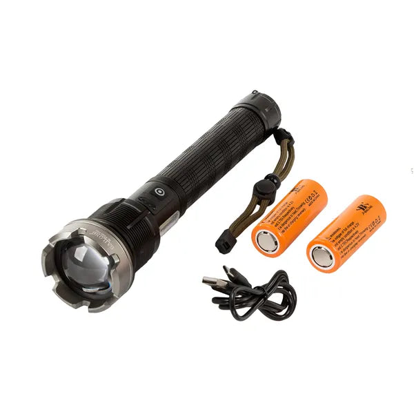 Taktikai LED zseblámpa XHP90, 1000 m hatótáv, 2×26650 akkumulátor, IPX5