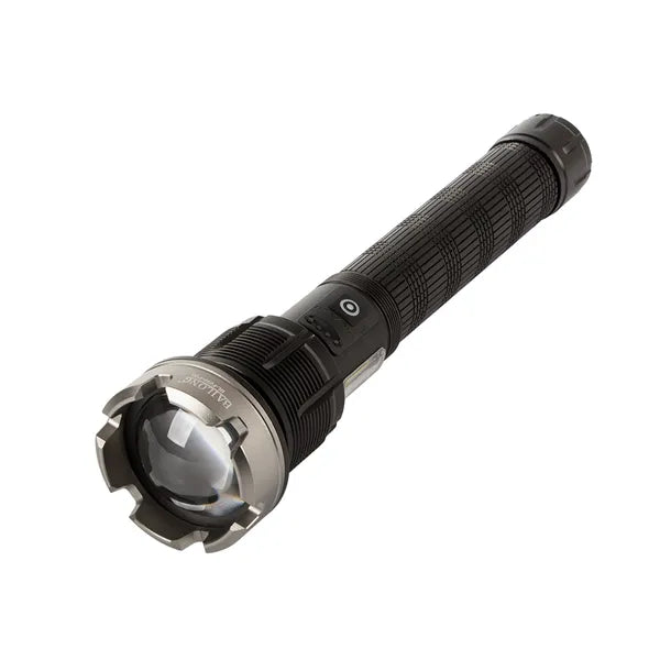 A CREE XHP90 LED-del szerelt taktikai zseblámpa extrém, akár 1000 m-es hatótávot biztosít, miközben IPX5 szintű víz- és porvédelemmel áll ellen az időjárás kihívásainak. Repülőgép-alumíniumból készült háza kemény eloxálást kapott a strapabírás érdekében, csúszásmentes felülete pedig nedves kézzel is biztos fogást nyújt. A fokozatmentes ZOOM lencserendszerrel szűk, nagy hatótávú sugár és széles, terítő fény között válthat egy mozdulattal.