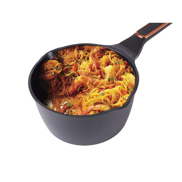 Készíts ízletes leveseket, ragukat vagy szószokat ebben a 2,9 literes, öntött alumínium lábasban, amely vastag falainak és háromrétegű tapadásmentes bevonatának köszönhetően gyorsan és egyenletesen melegszik fel, miközben minimális zsiradékkal is elkerülhető a leégés.