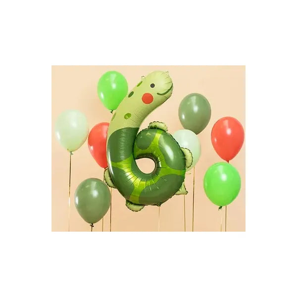 Színes, teknős mintás fólia lufi, amely ideális dísze a 6. születésnapnak. Könnyen felfújható a mellékelt szívószállal, akár levegővel, akár héliummal, és tartós anyaga révén hosszabb ideig lebeg vagy rögzítve mutatós dekoráció marad.