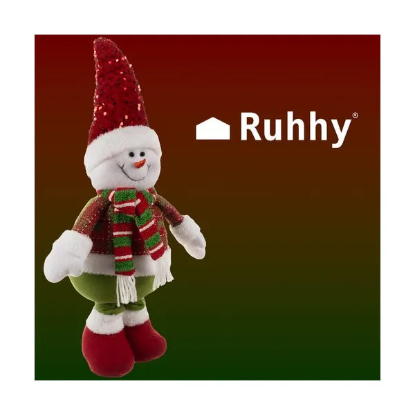 Kelts ünnepi hangulatot ezzel a barátságos hóember figurával, amelynek teleszkópos lábait pillanatok alatt 60 és 95 cm közötti magasságra állíthatod. A puha poliészter test, a drótos, formázható csillámos sapka és a klasszikus piros–zöld árnyalatok minden otthont, irodát vagy óvodát meghitté tesznek.