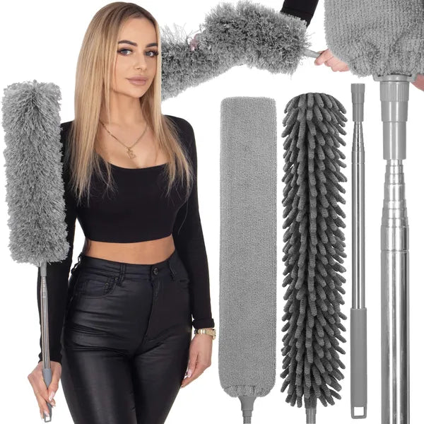 Szeretnéd a legmagasabb polcokat, lámpaernyőket vagy a radiátor lamelláit is pormentesen tartani? A 4 részes teleszkópos porolókészlet segítségével fejfájás nélkül elérheted a 2,55 m-es magasságot, miközben a statikus mikroszálak hatékonyan magukhoz vonzzák a porszemeket.