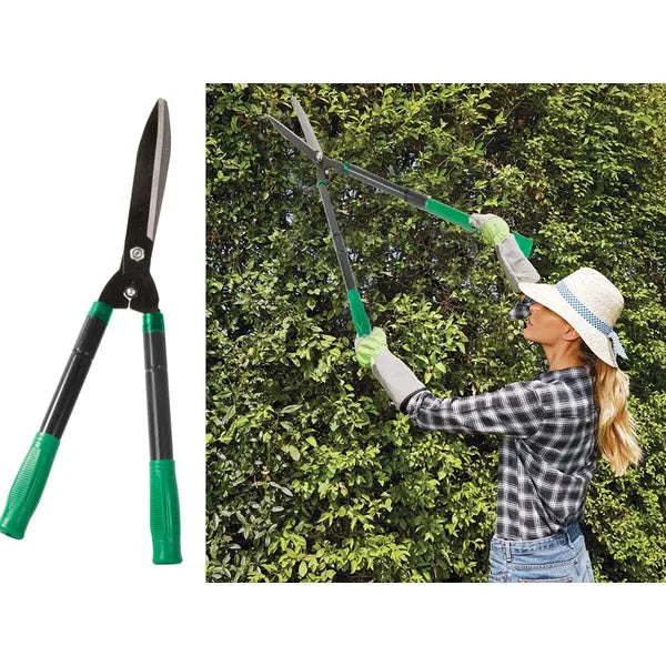 Teljesítsd a kerti metszési feladataidat gyorsan és erőfeszítés nélkül a teleszkópos sövénynyíró kézi ollóval! Az edzett acélból készült, 18 cm hosszú penge tiszta, pontos vágást biztosít, míg a 58–73 cm között állítható nyél rugalmasságot ad, hogy nehéz helyeket is könnyen elérj.