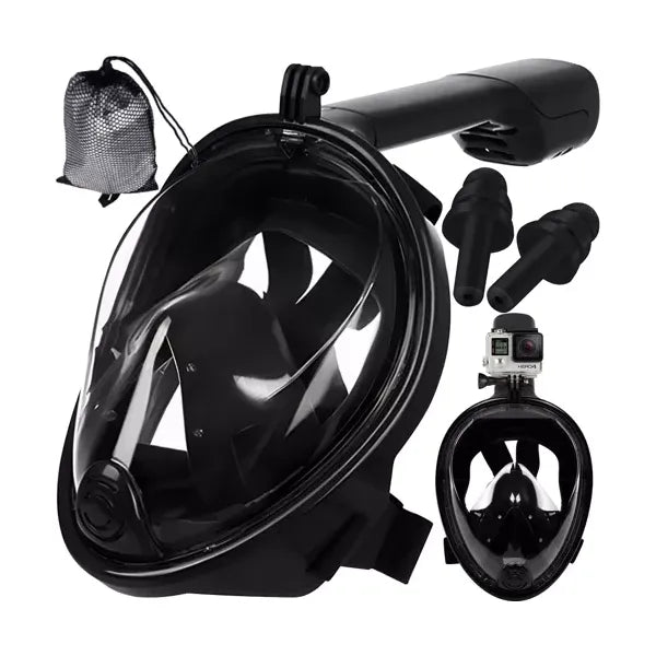 Teljes arcot fedő sznorkel maszk, S/M méret, 180° látószög, fekete