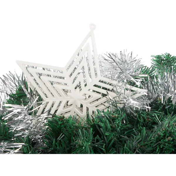 Tegye ellenállhatatlanná karácsonyfáját ezzel az elegáns, hófehér csillaggal, amely a fa tetején vagy akár koszorún, asztaldíszen is ragyogóan mutat. A törhetetlen műanyag kivitelnek köszönhetően nem kell többé aggódnia a szilánkok miatt, ha kisgyermek vagy házi kedvenc van a lakásban.